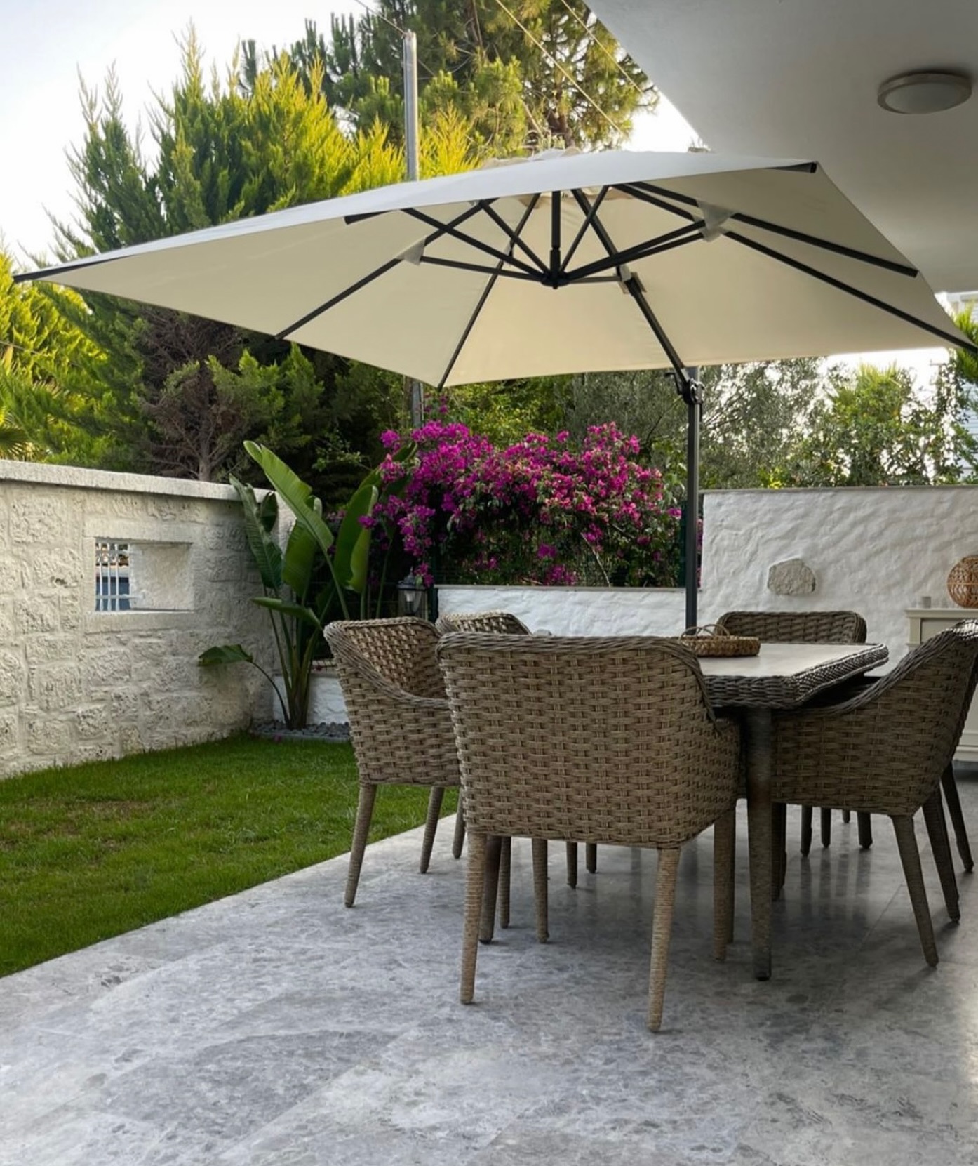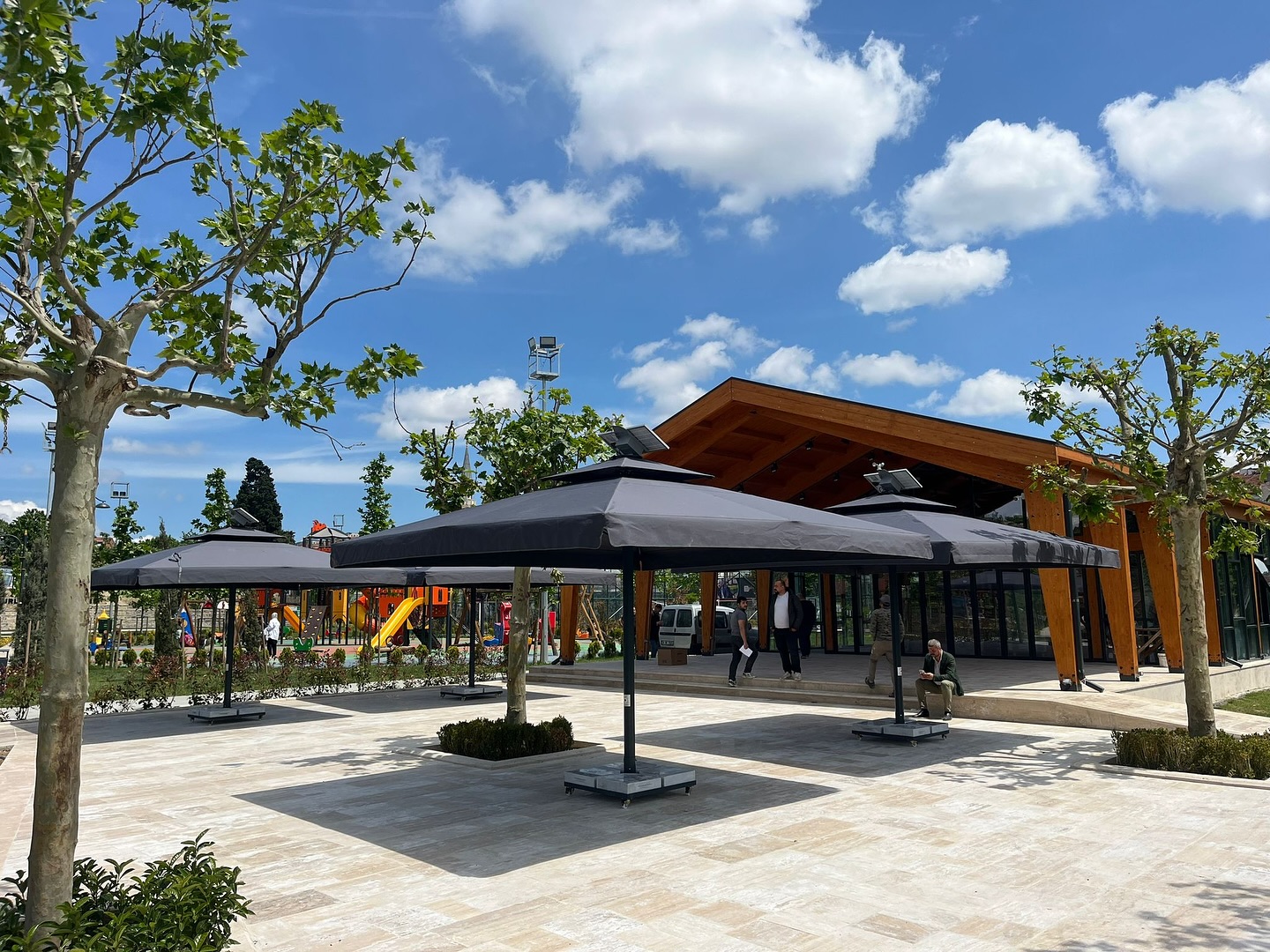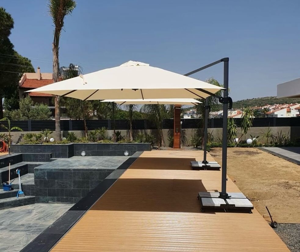 Yandan direkli şemsiyeler geniş alan kullanımını optimize eder ve estetik bir görünüm sunar.